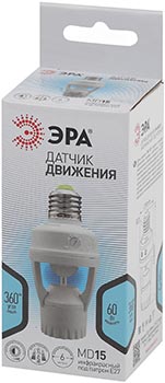 Датчик движения MD 015 "Эра" (60 ВА, 6 м, 360° IP20, установка в патрон Е27), белый