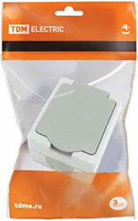 Розетка одноместная TDM "Вуокса" SQ1803-0007 (16 А, IP54) с заземлением, с крышкой, открытой установки, серый