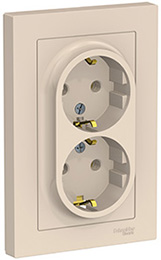 Розетка двухместная Schneider Electric ATN000224 AtlasDesign (16 А) скрытой установки, с заземлением, бежевый