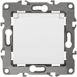 Розетка одноместная 12-2103-01 "Эра 12" (16 А, 250 В, IP20) с заземлением и защитными шторками, с крышкой, белый