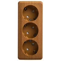 Розетка трехместная Systeme Electric PA16-012Т "Этюд" (16 А, IP20) открытой установки, с заземлением и защитными шторками, бук
