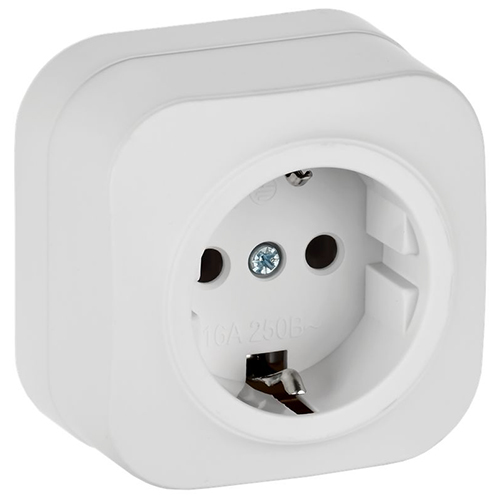 Розетка одноместная IEK РС20-3-ХБм Glory (16 А, IP20) открытой установки, с заземлением, белый матовый