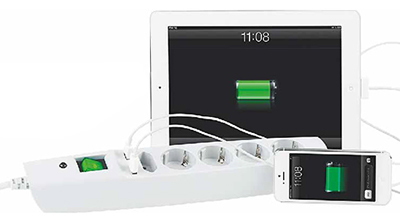 Два USB порта, расположенные на корпусе сетевого фильтра, позволяют заряжать одновременно два мобильных устройства.