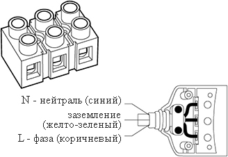 Для подключения применяется медный 3-жильный провод сечением 1,0 - 1,5 кв.мм.