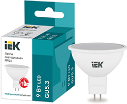 Лампа светодиодная IEK LLE-MR16-9-230-40-GU5 (софит, GU5.3, 9 Вт, 810 лм), цвет свечения нейтральный белый