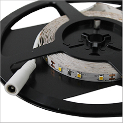 Светодиодная лента имеет двухсторонний скотч на обратной стороне, что значительно упрощает ее установку на любую гладкую поверхность.