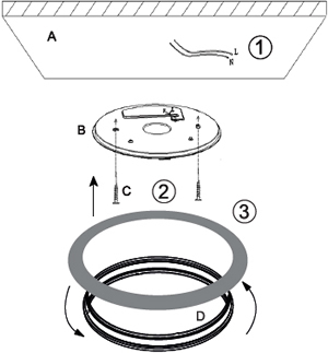 - Установите рассеиватель светильника на закрепленном основании светильника, повернув его по часовой стрелке.
