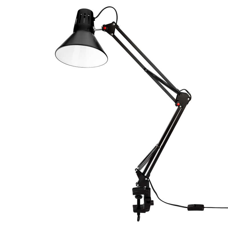 Винтовой зажим позволяет прочно фиксировать светильник как на стол, так и на спинку кровати и на прочие предметы мебели, а гибкая стойка позволяет менять направление света на 360°.