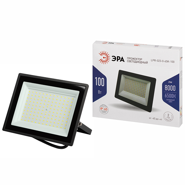 Прожектор светодиодный LPR-023-0-65K-100 "Эра" (100 Вт, 8000 лм, 6500 К, IP65), черный