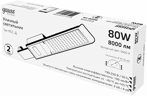 Светильник светодиодный уличный Gauss 629536380 Avenue (80 Вт, 8000 лм, 5000 К, КСС "Д")